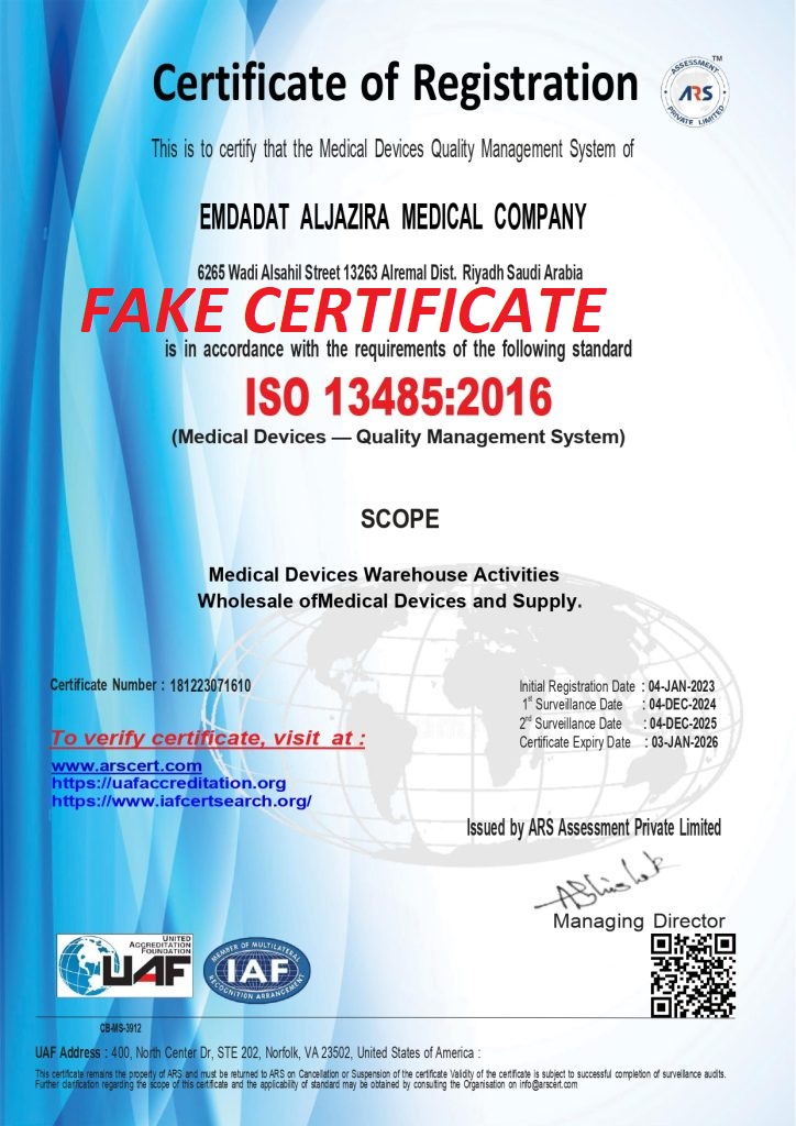 It has come to our attention that counterfeit certificates bearing our logo and branding have been circulated in various country. To confirm the authenticity of any certificate, please visit our official verification page at https://arscert.com or contact us directly at +91-9696321157. We are actively investigating these incidents and are committed to protecting the integrity of our certification process. Legal action will be pursued against individuals or entities found to be distributing fake certificates or misusing legitimate ones.
